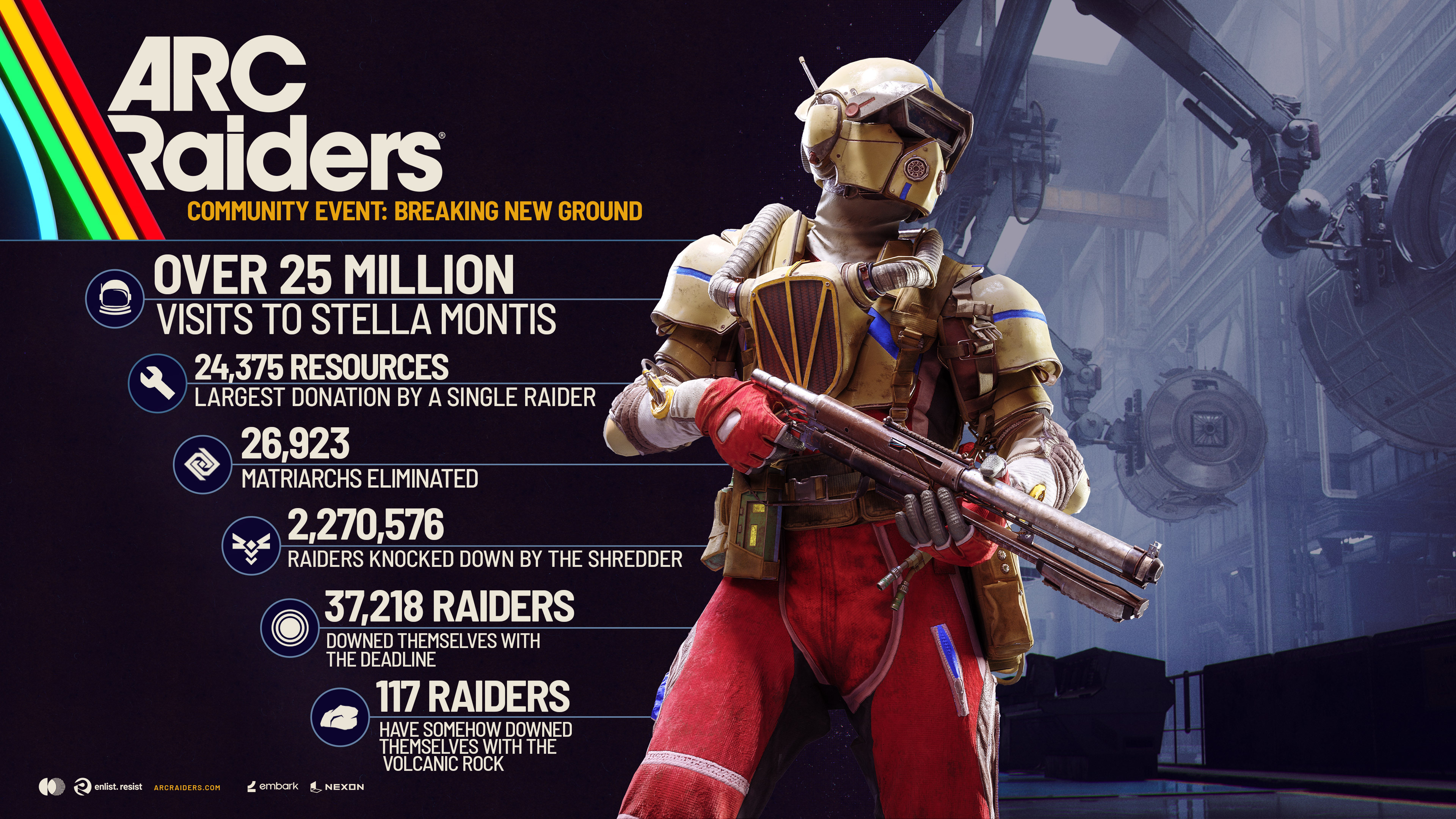 Az Embark Studios által nemrégiben közzétett képből kiderült, hogy az új térképet már több mint 25 millió alkalommal látogatták meg a játékosok. A Stella Montis területén néhány új küldetés is telejsíthető, valamint rengeteg, csak erre a térképre jellemző loot is található rajta. A látogatások mellett az új ARC-ellenség, a Shredder is szépen szedi az áldozatait: már 2,2 millió raider veszett oda általa, úgyhogy vigyázzatok vele! Bár az ARC Raiders nem került be az idei The Game Awards GOTY-jelöltjei közé, a multiplayer-kategóriában azért még szavazhattok rá!