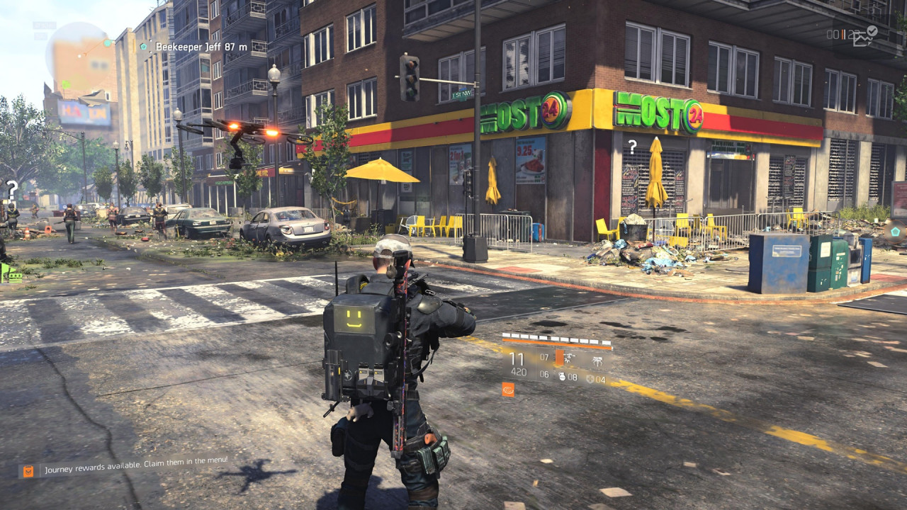 Teljesen az alapoktól ugrottam bele, vagyis az ügynökömet (Agent) a nulláról kezdtem el felépíteni, de ami szinte rögtön feltűnt, hogy a The Division 2 sokkal jobban jutalmazza a játékost, mint az első felvonás. Jóval többször dobál erősebb fegyvereket és páncélokat a lootokból, így a főküldetéseket is könnyebben lehet darálni. A játék egyik legnagyobb erőssége a hangulata és a részletgazdag világa. A posztapokaliptikus Washington D.C. és a később elérhető New York (és benne Brooklyn) területek rendkívül kidolgozottak, tele apró történetmesélő elemekkel, amelyek folyamatosan fenntartják az érdeklődést. A környezet nemcsak látványos, hanem élőnek is hat: random események, egymással is harcban álló ellenséges frakciók mozgása és dinamikus aktivitások teszik változatossá a játékmenetet. Ebből a szempontból a játék nekem nem kevés The Last of Us hangulatot hozott. Üresen álló autók az út közepén, elhagyatott épületek, szemét-hegyek mindenütt és az ezek között kóborló állatok dobják fel a környezetet.