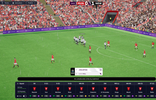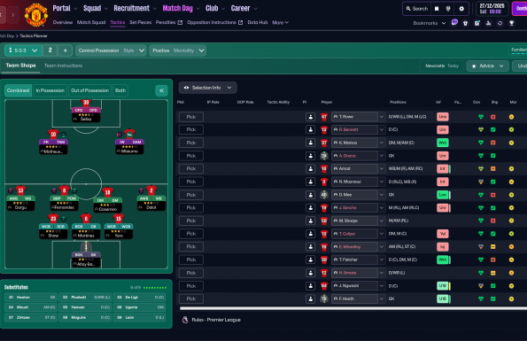 Apropó taktika: a csapatunk felállásának alakítása is ott van a kellemes újítások között. A korábban megszokott támadó és védekező beállítás helyét a labdás és labda nélküli fázisok vették át, ráadásul teljesen egyedi felállást állíthatunk be mindkét lehetőség esetén. Természetesen itt a játékosok instrukcióit is külön-külön be tudjuk állítani, így sokkal átláthatóbban alakíthatunk ki részletesebb taktikát a csapatunknak. Sajnos az alapjáraton remek fejlesztés hozott magával egy érdekes bugot, néha ugyanis teljesen indokolatlanul cserélt pozíciót védekezésben és támadásban a szélső középpályásom és a szélső védőm, aminek értelemszerűen teljes káosz lett a vége. Ráadásul legalább tízszer kellett visszaállítanom őket az eredeti posztjukra, mire a játék is úgy gondolta, hogy beadja a derekát, és végrehajtja az utasításaimat. Többször előfordult, hogy csak a sokadik próbálkozásra tudtam 1-2 játékost cserélni vagy a kezdőbe állítani, ráadásul alapból kényelmetlenebb kezdőt és cseresort összerakni, mint eddig. Ezzel pedig el is érkeztünk egy rendkívül fontos pontra, az új felhasználói felületre.