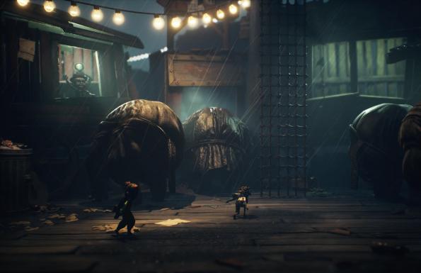 Sajnos a Little Nightmares 3 játékmenetén már erősen érződik, hogy kezd elkopni ez a koncepció. Az egy dolog, hogy iszonyat sötét a játék (hiába kapunk zseblámpát), de a pályák felépítése is valahogy inkább érződik tisztességes iparosmunkának, mint valóban kreatív ötletelés eredményének. Sok esetben inkább volt frusztráló a 3D-s játéktér, például mikor fel kell ugrani egy húskampóra és 10-ből 9-szer lezuhantam, mert egyszerűen nem tudtam behatárolni térben, hogy hol állok. Ez néhány menekülős szakaszt is megkeserített, és itt el is érkezünk a számomra egyik legfájóbb ponthoz: a főellenfelekhez. Az első rész két szakácsa (The Two Chiefs), a The Janitor, vagy épp a második rész megnyúlt nyakú tanárnője (The Teacher) valahol mind ikonikusak voltak. Ezzel szemben a harmadik részben olyan felejthető, olcsó utánzat főellenfeleket kapunk, hogy egyetlen percig sem éreztem nyugtalanító, vagy egyenesen félelmetes hangulatot, mikor megjelentek. Talán egyedül a The Factory pók-asszonyságát (The Supervisor) tudnám kiemelni, de a többiek tényleg nagyon sablonosak lettek. Kisebb mezei ellenfelek persze ezúttal is befigyelnek, és jópofa, hogy néhol össze kell dolgoznia a két főszereplőnek, tehát például Low meglövi őket nyíllal, Alone pedig rájuk csap a csavarkulccsal. Ez az egymásra utaltság egyébként folyamatosan jelen van: együtt kell kitalálnotok, hogy mi lehet a továbbjutás kulcsa, úgyhogy ebből a szempontból a nagy elánnal beharangozott kooperatív-mód valóban elég hasznos.