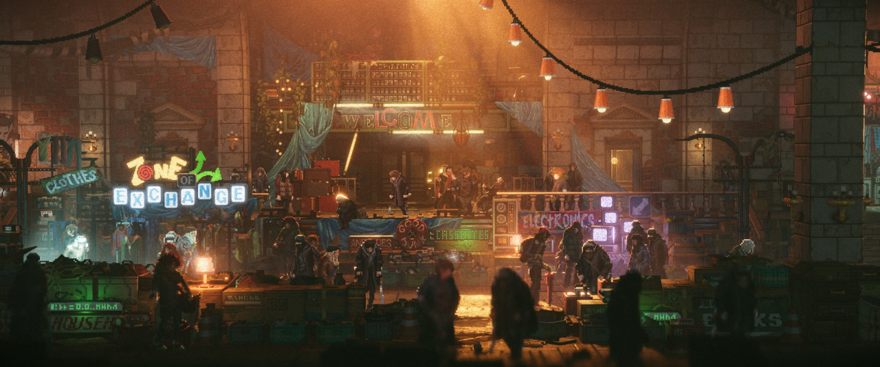 Szerencsére nem sokáig leszünk egyedül a bajban, némi csihi-puhit – ennek menetéről később – követően ugyanis összefutunk a program egyik legfontosabb karakterével, Tempesttel, akiről három dolgot kell tudni: roppant stílusos, még annál is forrófejűbb és ismer egy biztonságos helyet. Phoenix Station egyfajta központi HUB-ként szolgál, ahol megismerkedhetünk a cselekményt előrébb gördítő szereplőkkel, felvehetünk néhány teljesen opcionális mellékküldetést, valamint láthatjuk, miként tengetik mindennapjaikat a társadalmi ranglétra legalján kuporgó emberek. Na de mégis, hogy juthatott idáig Amerika, a lehetőségek földje? A Sad Cat Studios egészen remek munkát végzett világépítés terén, mert bár a legalapvetőbb információkhoz akkor is hozzájutunk, ha kizárólag a sztorira fókuszálunk, a teljes kép csak akkor áll össze, ha felszedegetjük az itt-ott elszórt naplóbejegyzéseket, képeket és interjúrészleteket.